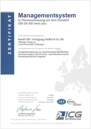 Die internationale Norm ISO 9001:2015 beschreibt Anforderungen an Qualitätsmanagement-Systeme, nach deren Vorgaben wir die Aufträge unserer Kunden nach verschiedenen Standards vertrauensvoll abwickeln.